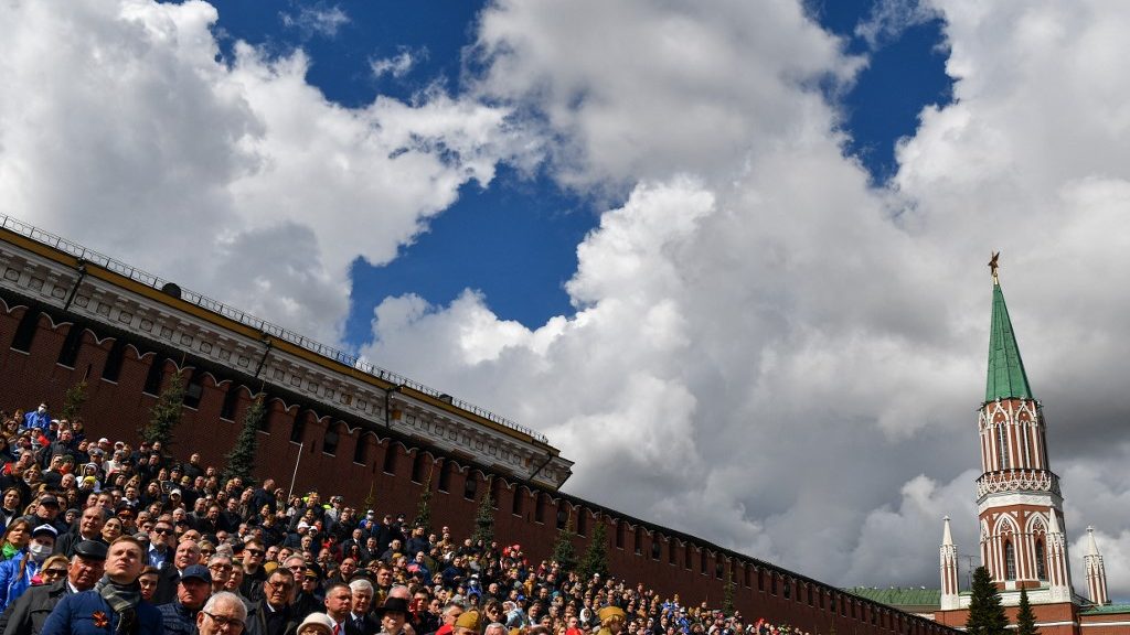 Vlagyimir Putyin orosz elnök azzal kezdte a beszédét a moszkvai Vörös téren, hogy gratulált a 77 évvel ezelőtt a második világháborúban győztes szovjet csapatoknak, majd rögtön rátért Ukrajnára.