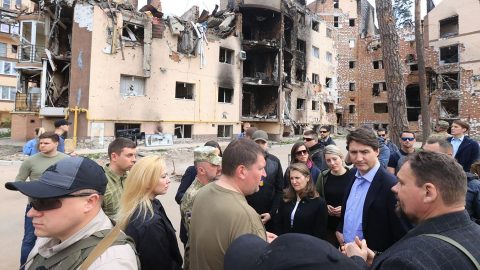 Justin Trudeau kanadai miniszterelnök vasárnap be nem jelentett látogatást tett az ukrán Irpinben.