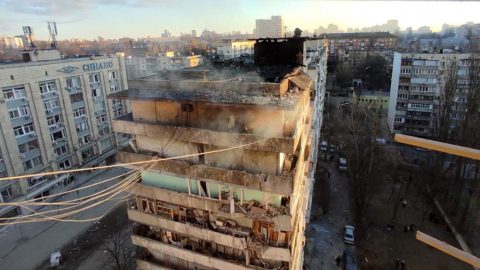 Egy 12 emeletes lakóházat ért bombatalálat szerda hajnalban Kijevben – írja a Guardian.