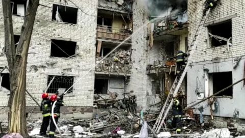 A BBC tette közzé az ukrán rendőrség videóját, amin látszik a csernyihivi bombázás utóhatása.
