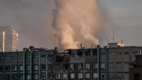 Vitalij Klicsko polgármester szerint több lakóépület is megrongálódott a hétfő reggeli támadásban, a mentők és a tűzoltók a helyszínen vannak.
