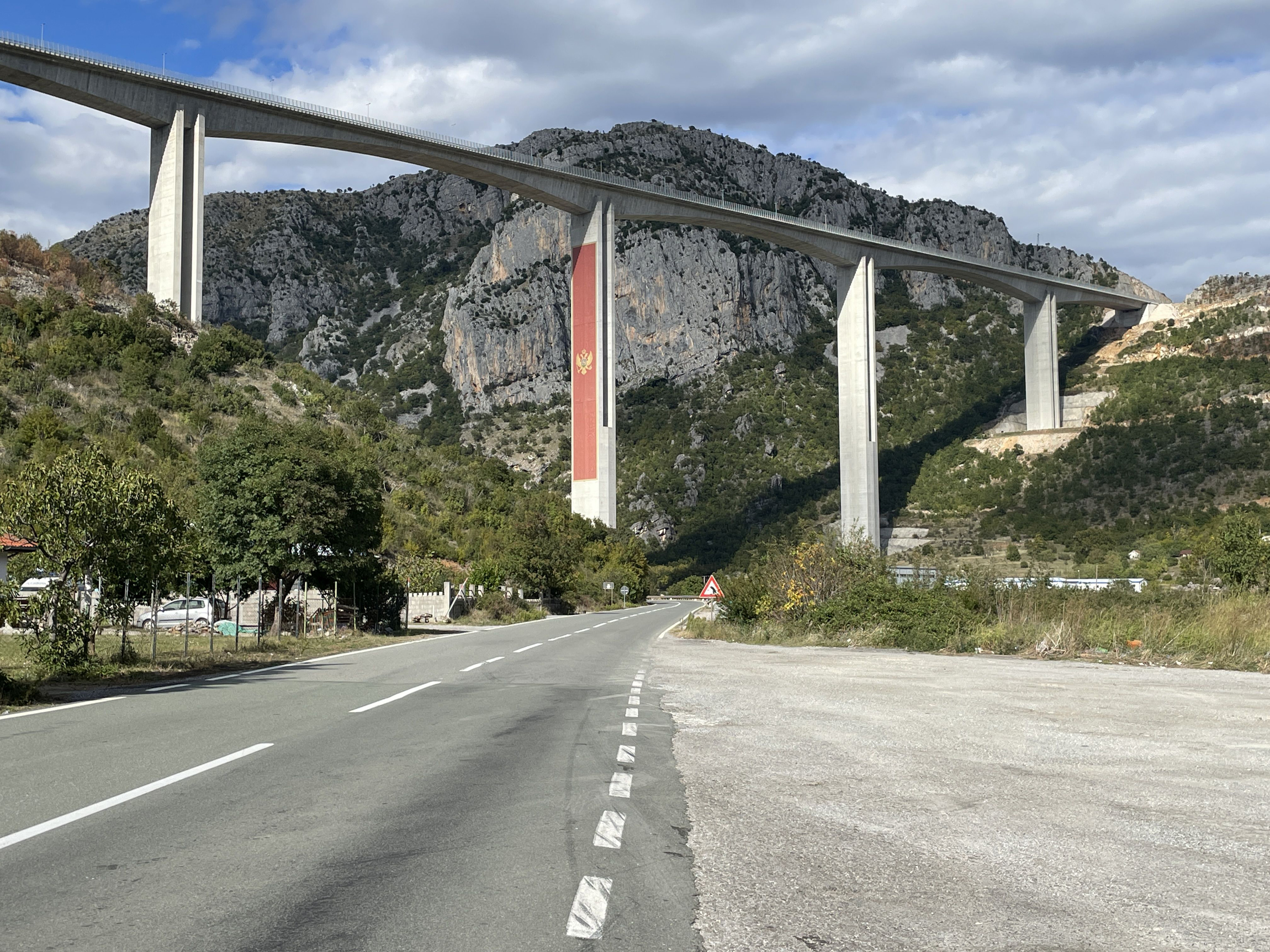 Szerző felvétele A hegyvidéki autópálya völgyhídja a montenegrói zászlóval