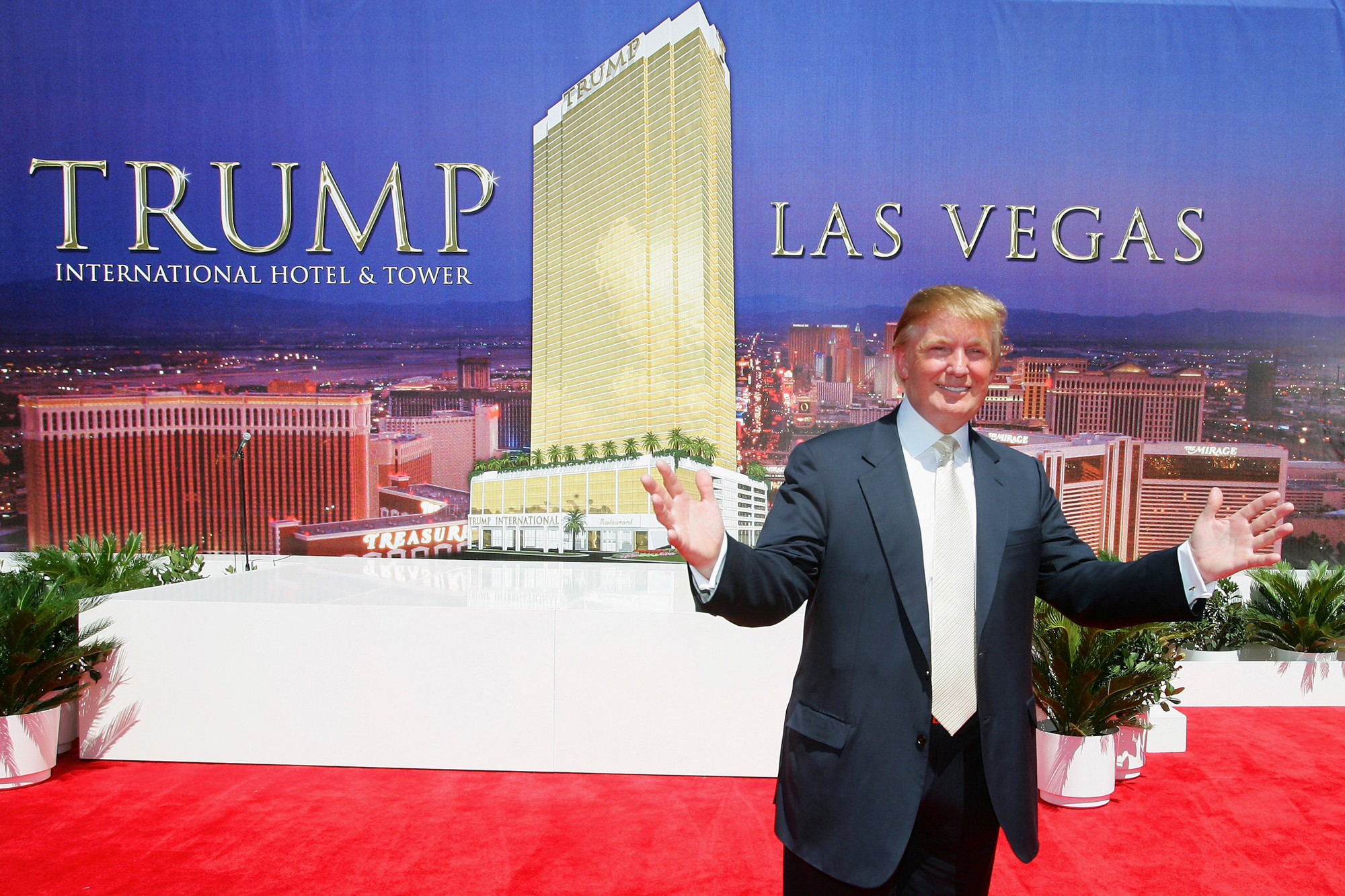 Ethan Miller / Getty Images North America / Getty Images / AFP Donald Trump a 64 emeletes Trump International Hotel & Tower Las Vegas ünnepélyes alapkőletételét követően, 2005. július 12-én.