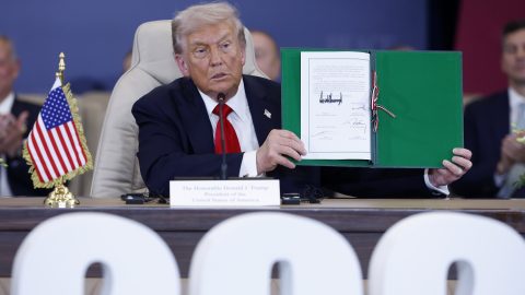 Hétfőn este az egyiptomi Sarm es-Sejkben Donald Trump amerikai elnök, Recep Tayyip Erdogan török államfő, Abdel-Fattáh esz-Szíszi egyiptomi elnök és Tamím bin Hamad Ál Száni katari emír aláírták a gázai tűzszüneti megállapodást. Trump az aláírást követően elmondta, élete során már több alkut hozott tető alá, ám a mostanit tartja mindegyik közül a legnagyobbnak. A helyszínen lévő Orbán Viktort nagyszerű vezetőként jellemezte. Galéria.