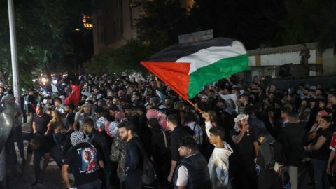 Több száz tüntető dulakodott a libanoni biztonsági erőkkel Bejrút Awkar nevű külvárosában, az amerikai nagykövetség előtt.