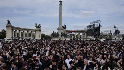 Egyre nagyobb a tömeg a Hősök terén és környékén, de szinte csak 40 év alattiak vannak.