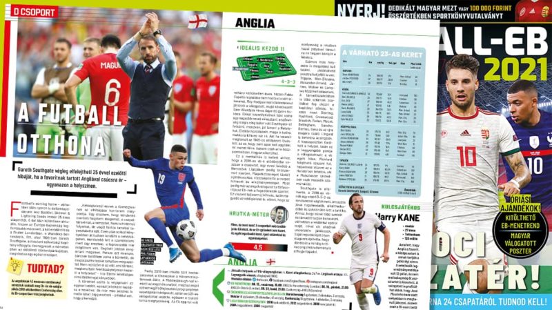 Terjedelmes részt kaptak a csoportellenfeleink is, akik nem éppen nyeretlen kétévesek: az Európa-bajnoki címvédő Portugália, az aktuális világbajnok Franciaország, valamint a minden nagy torna előtt esélyesnek számító Németország. (Előbbi kettővel Budapesten, a németekkel Münchenben játszunk.) A magazin második felében az Európa-bajnokság további csapatairól olvashatunk részletesen, Angliától Olaszországon át egészen Észak-Macedóniáig, sőt a kiemelt együttesek várható 23-as keretét is megismerhetjük. A válogatottak erősségét Hrutka János, egykori válogatott labdarúgónk elemzi és osztályozza.