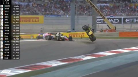 Ijesztő baleset az Abu-Dzabi Nagydíj első körében. Grosjean volt a másik fél a balesetben.