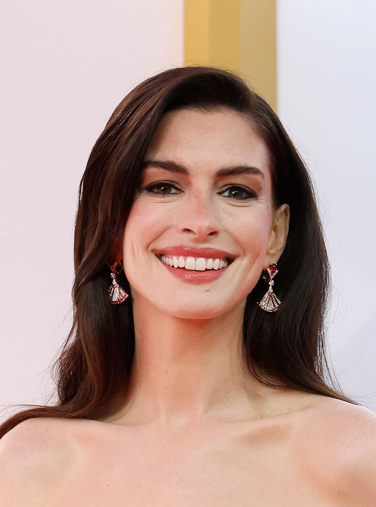 A 43 éves színésznő vörös estélyi ruhát választott aznapra, és mikor máskor, ha nem most sorakoztak előtte a fotósok, megörökíteni az előző napon kiemelt titulust begyűjtő Hathaway lépéseit.