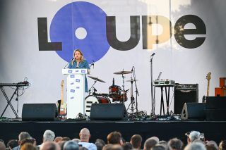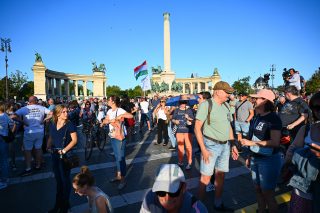 Ópannon, prezidenti tisztelettel köszöntötte a megjelenteket Rainer-Micsinyei Nóra, a tüntetés első felszólalója, aki mondandóját azzal kezdte, hogy az elmúlt időszakban a kormány milliárdokat költött el a magyarok pénzéből gyűlöletkeltő reklámokra, plakátokra, hazugságokra épülő nemzeti konzultációkra.