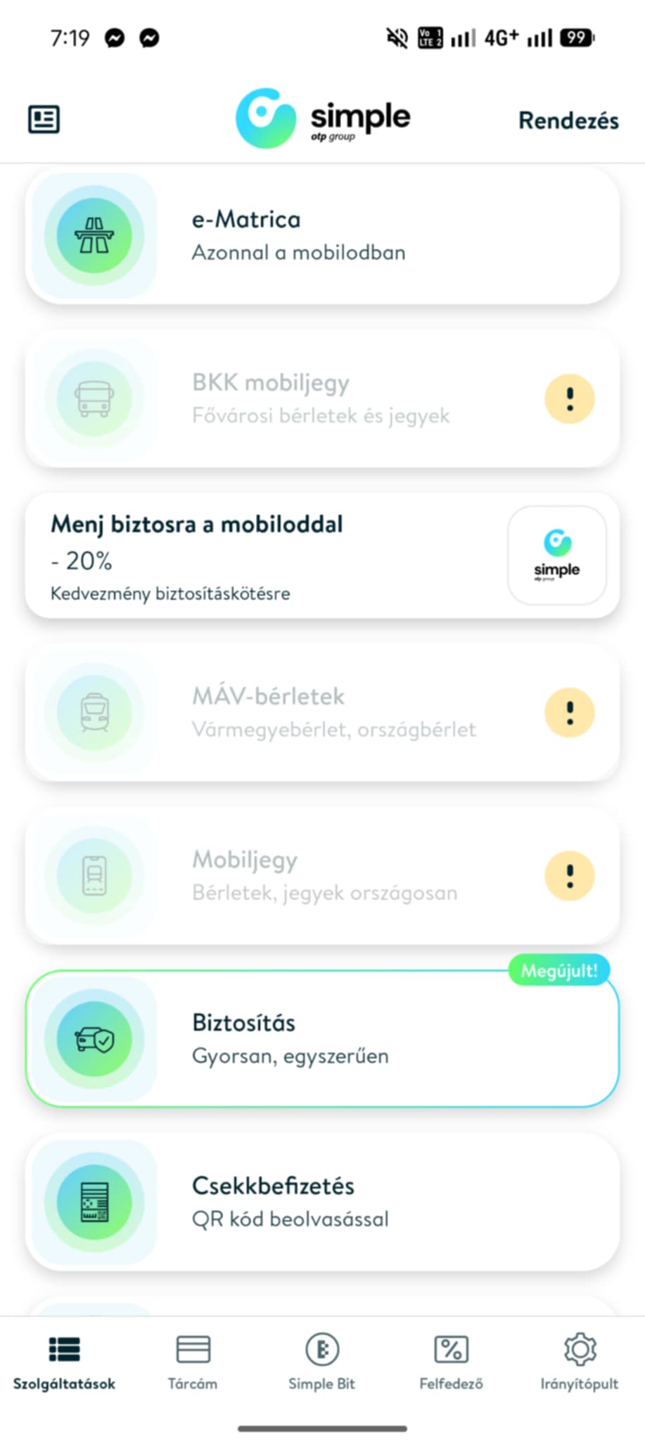 A Simple alkalmazásban több funkció is átmenetileg elérhetetlenné vált február 24-én reggelre. Tapasztalataink szerint az alábbi funkciókat nem lehet működésre bírni: