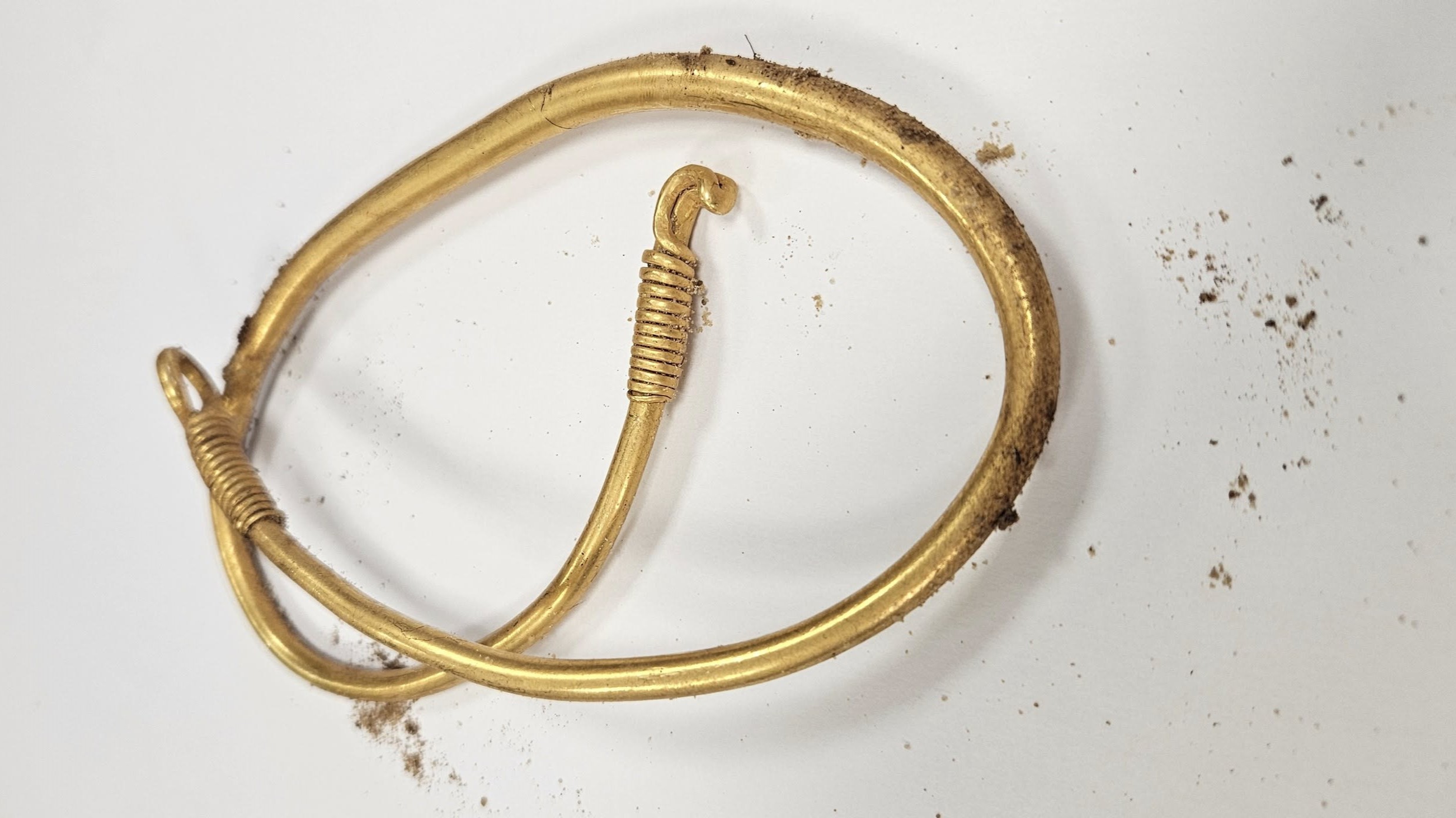 Gyönyörű, ősi aranytárgy került elő a lengyelországi Kalisz közelében – írja az Arkeonews. A 222 grammos nyakláncot idén augusztusban találta meg Mateusz Lachowicz, egy helyi történeti kutatócsoport, a DENAR Kalisz tagja.