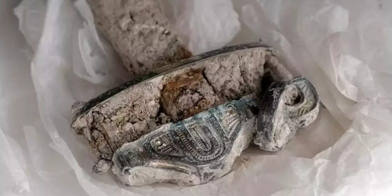 A másik kiemelkedő lelet egy aranymedál volt, amelyen egy kígyó vagy sárkány látható. A szakértők szerint ez az ékszer egy magas státuszú nőé lehetett.