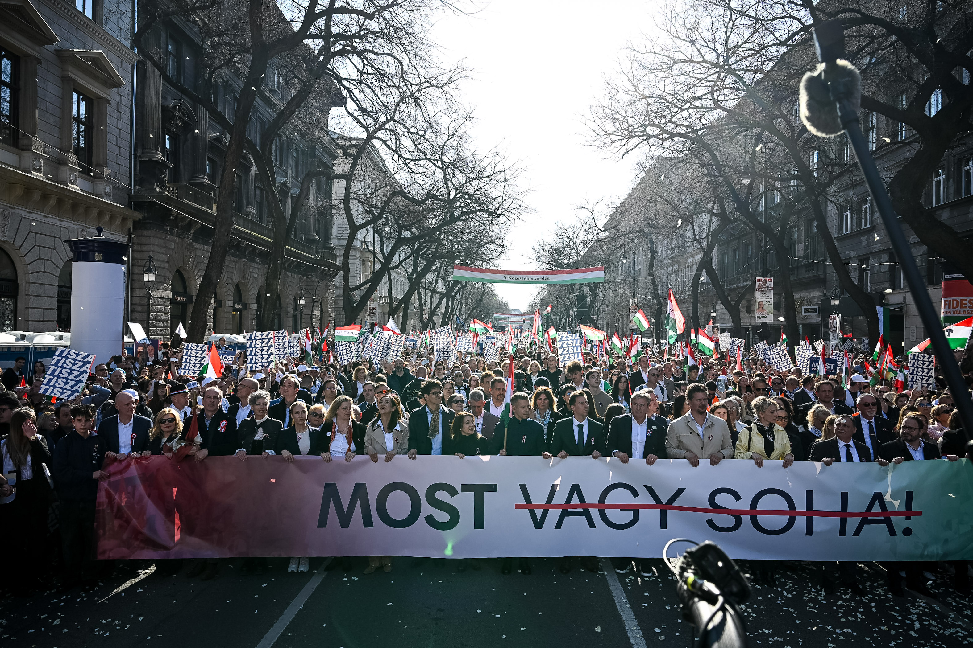 Közel egyórás ünnepi beszédet tartott Magyar Péter március 15-én a Tisza Párt rendezvényén a Hősök terén, amely már azelőtt megtelt, hogy a Nemzeti Menet eleje odaért volna, a vonulás résztvevői közül sokan kivetítőn követték végig a műsort.